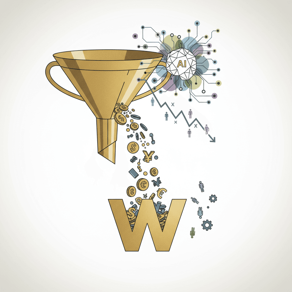 Read those numbers again. The top two companies combine for 77% of the probability. That kind of concentration matters enormously for investors, because it means capital is flowing into an ever-narrower group of winners. Think of it like a funnel. Billions of dollars in AI investment are pouring in at the top, but only a couple of companies are catching most of the water at the bottom.
